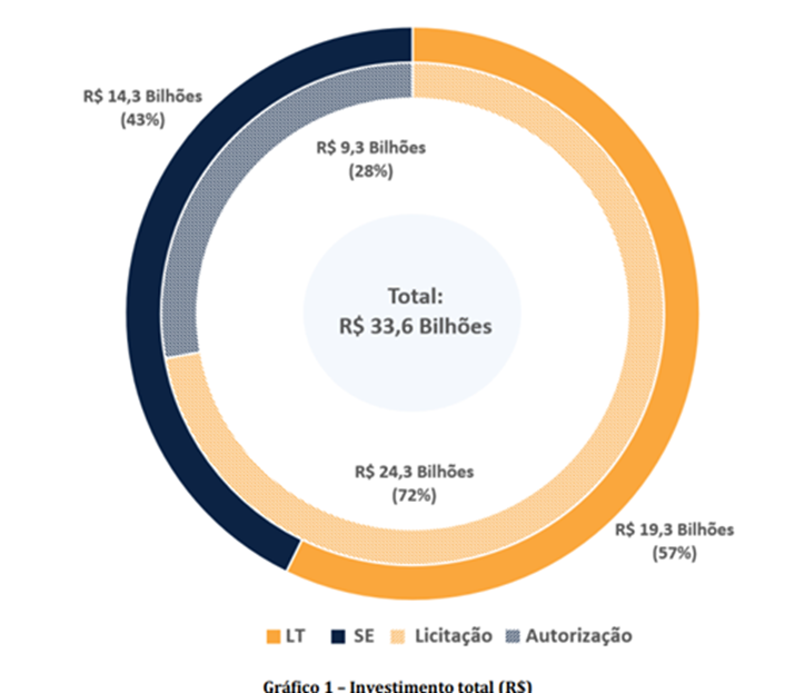 De acordo com o relatório publicado, a maior parte desse valor, ou R$ 19,3 bilhões, referem-se a investimentos em linhas de transmissão. Os 43% restantes, R$ 14,3 bilhões, estão associados a subestações.