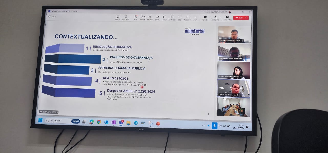 O Conselho de Consumidores de Energia da Equatorial Alagoas (CCEDAL) realizou nesta quarta-feira, 18, sua última reunião do ano e contou com a apresentação de como será aplicado o Sandbox Tarifário em Alagoas, por analistas de Regulação do Grupo Equatorial e pela empresa I4 Economic Regulation, executora do projeto.